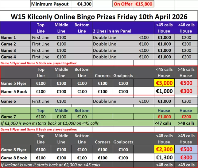 Kilconly Online Bingo